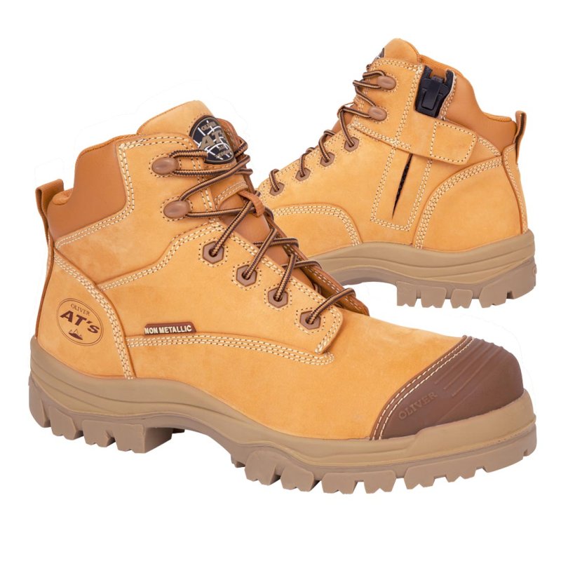 Boot - Lace Up/Zip Side Safety Oliver 45630Z AT45 Leather Composite Toe Scuff Cap PU/TPU Sole Wheat