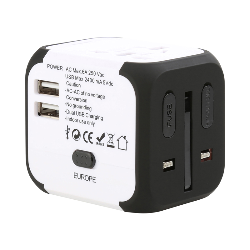 The rubber coated Mondo travel adaptor is compact and stylish providing 2 USB ports with 2.4A output. With its single plug safety feature, built in safety shutters, integrated fuse and surge protection the Mondo provides you peace of mind by allowing you to connect to power outlets in more than 150 countries world-wide. Suitable for use with use smart phones, tablets, video cameras, hairdryers, shavers etc. and includes a zippered pouch and user manual. Please Note: This item is an international travel adaptor and is to be used by travellers when visiting abroad. It is not certified or designed for use in Australia or New Zealand and does not convert voltage; 110 volts to 240 volts or 240 volts to 110 volts.