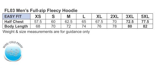 Description: A traditional fleecy hoodie with full-zip in the centre front. Two handwarmer pockets. A top design for work & outdoor activities.