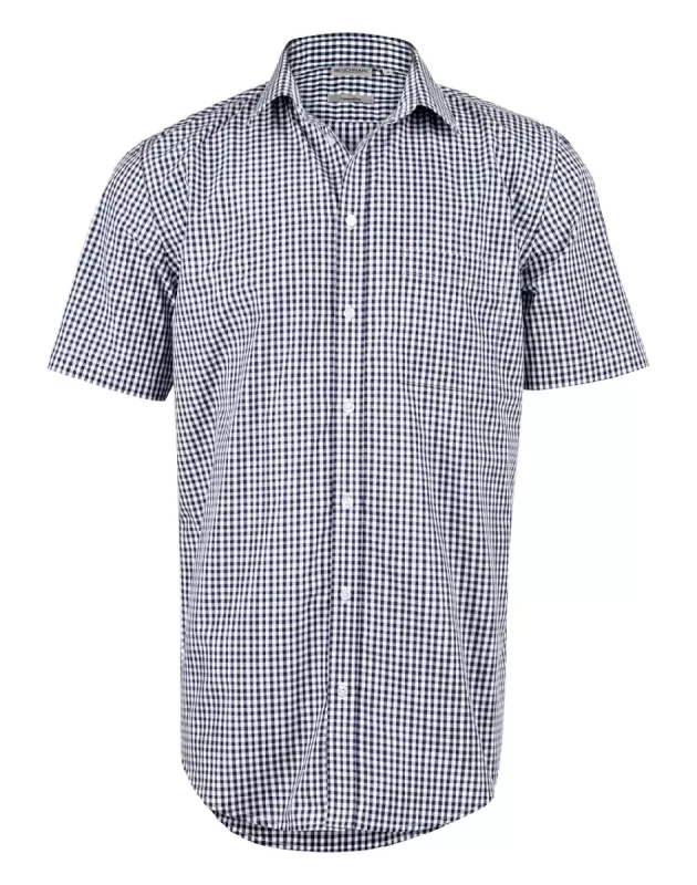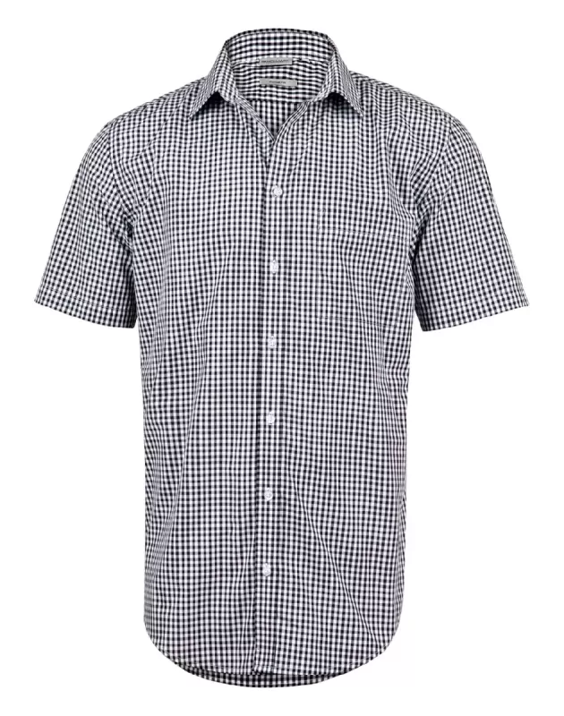 Men's Gingham Check S/S Shirt Fabric: 60% Cotton 40% Polyester, Yarn Dyed Gingham Check,