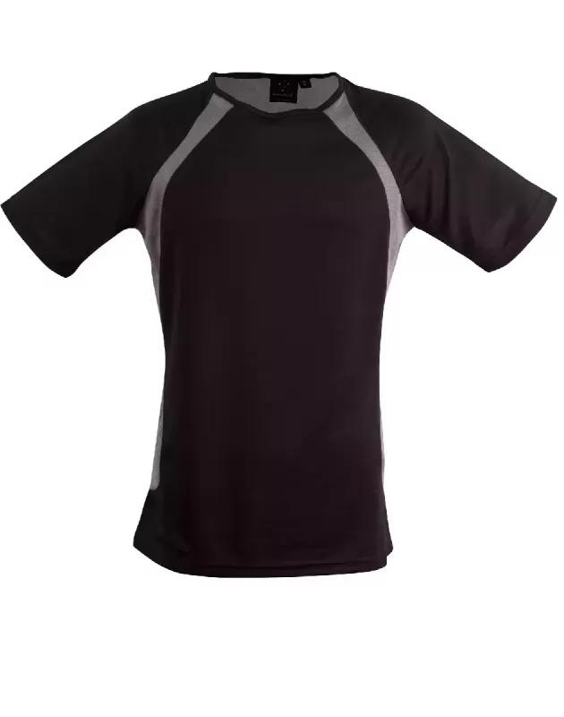 Description: Moisture management fabric. Ultra light mesh in contrast contoured side panels for ventilation. Excellent fit and comfort for athletes.